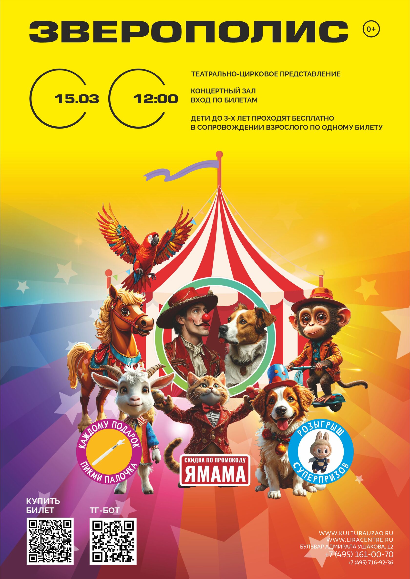 Дети до 3-х лет проходят бесплатно в сопровождении взрослого по одному билету.
